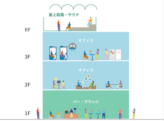 本計画の企画・空間設計・実施設計はコクヨが進めており、オフィス機能を中心としながら、交流や健康増進といった要素を掛け合わせた複合的な空間として計画しています。