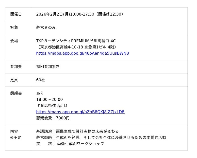 2/2(水) 建築AI経営研究会(東京・品川) 申込フォームはこちらhttps://forms.gle/v2vBk4mcuzvP69oSA