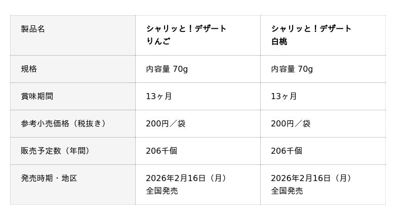 はごろもフーズ株式会社(本社:静岡県静岡市 社長:後藤佐恵子)は、冷凍でも冷蔵でもお召し上がりいただける果肉感たっぷりのフルーツジュレ『シャリッと!デザート』2種を発売します。