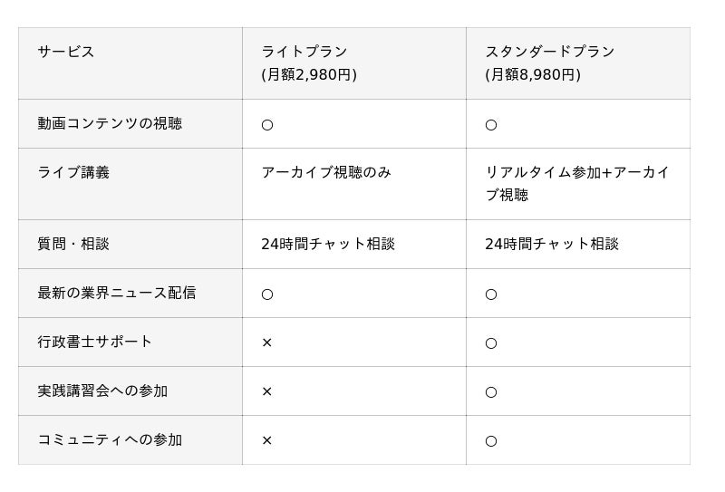 ※スタンダードプランはアーカイブ視聴可能・ライトプランはアーカイブ+リアルタイム参加が可能。