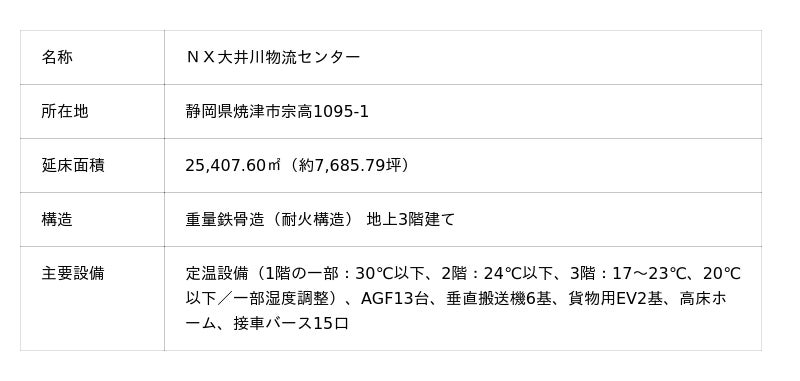 日本通運、静岡県焼津市に定温・定湿新倉庫「NX大井川物流センター」を開設
