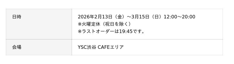 2026年2月13日(金)~3月15日(日)の期間中、YSC渋谷でアンケートの回答やSNS投稿に協力していただいた方に、オリジナルステッカーをプレゼントします(数量限定、先着順)。