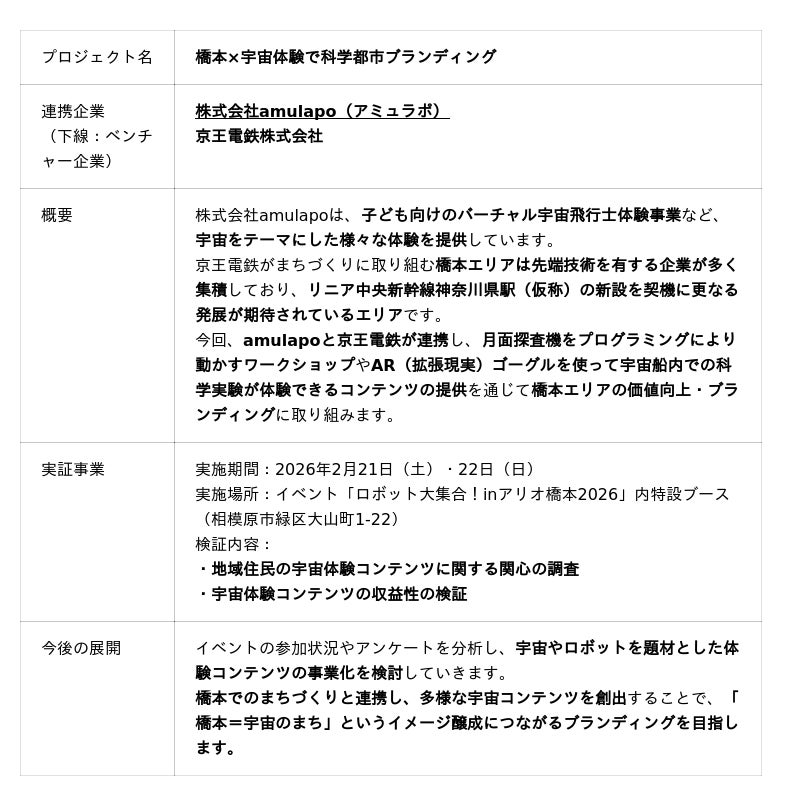 amulapo×京王電鉄「橋本×宇宙体験で科学都市ブランディング」