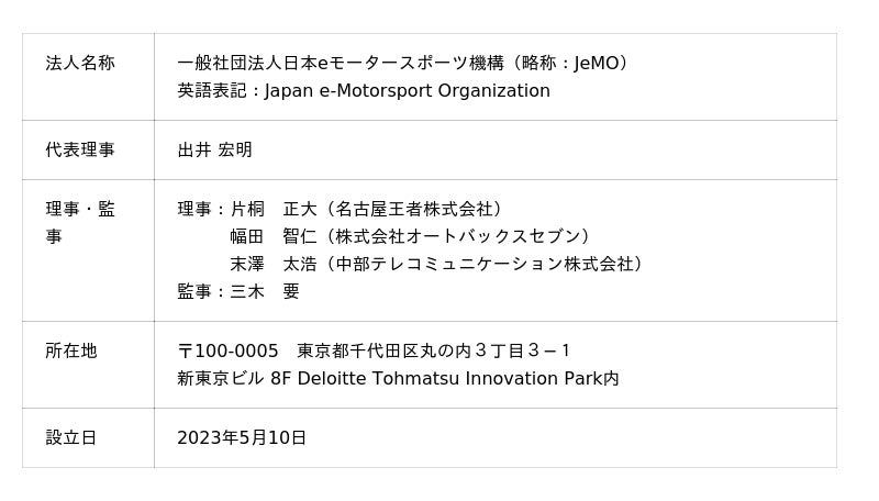 一般社団法人日本eモータースポーツ機構(JeMO)法人概要