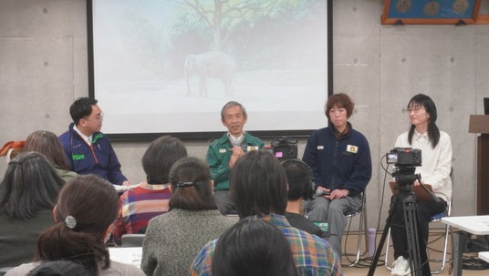 イベントは、「生命の共生・自然との調和」を目指すよこはま動物園ズーラシアとパルシステム連合会、パルシステム神奈川が協力して開催しました。園長の村田浩一さんと飼育員伊藤咲良さんの講演、パルシステム神奈川常任理事の河瀬亜希さんが加わったクロストークを会場の41人とオンライン配信で218人が視聴しました。