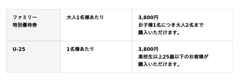 ・ファミリー優待&U-25チケットは、入場料定価の「50%OFF」!