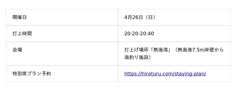 【春空に咲く大輪の華】春休みは熱海温泉へ、4月の熱海海上花火大会は26日(日)!特等席確約の送迎付きプランの販売中。空席少なくなっているので、ご予約はお早めに!