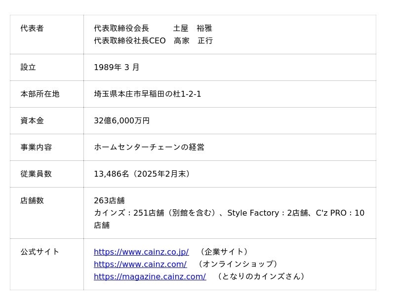 株式会社カインズは、29都道府県下に263店舗を展開するホームセンターチェーンです。