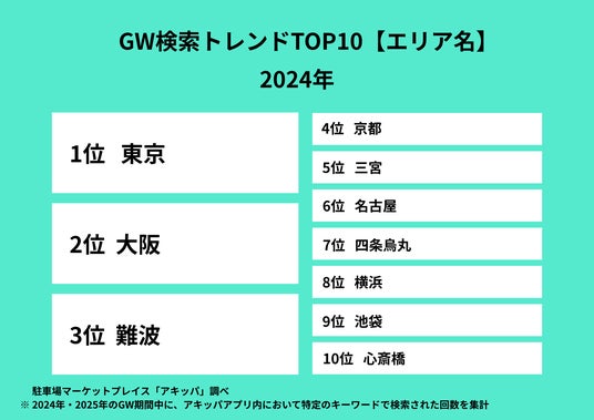 駐車場マーケットプレイス「アキッパ(akippa)」を運営するakippa株式会社(代表取締役社長 CEO:金谷元気)は、2024年・2025年のゴールデンウィーク(GW)期間におけるサービス内の検索動向(※)および、2026年GWのおでかけに関する意識調査の結果を公開します。