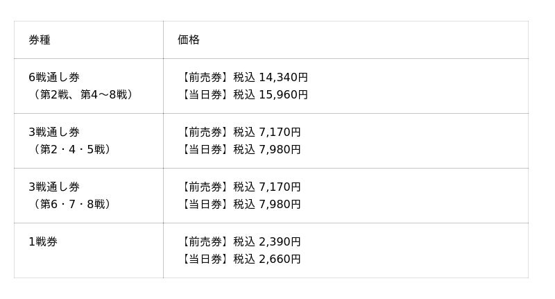 ※通し券は各最終大会の予選レース日の当日0時から販売します。