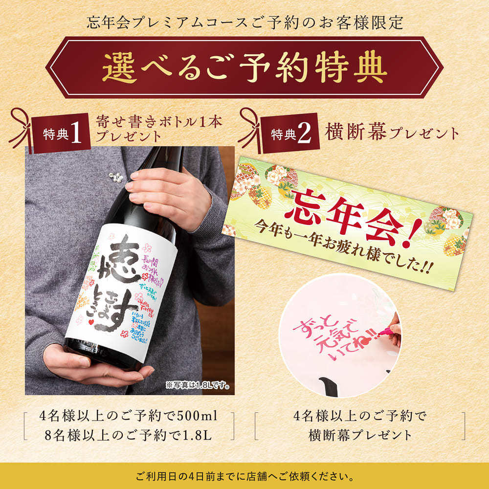 選べるご予約特典付き!宴会コース4000円〜各種ご用意!