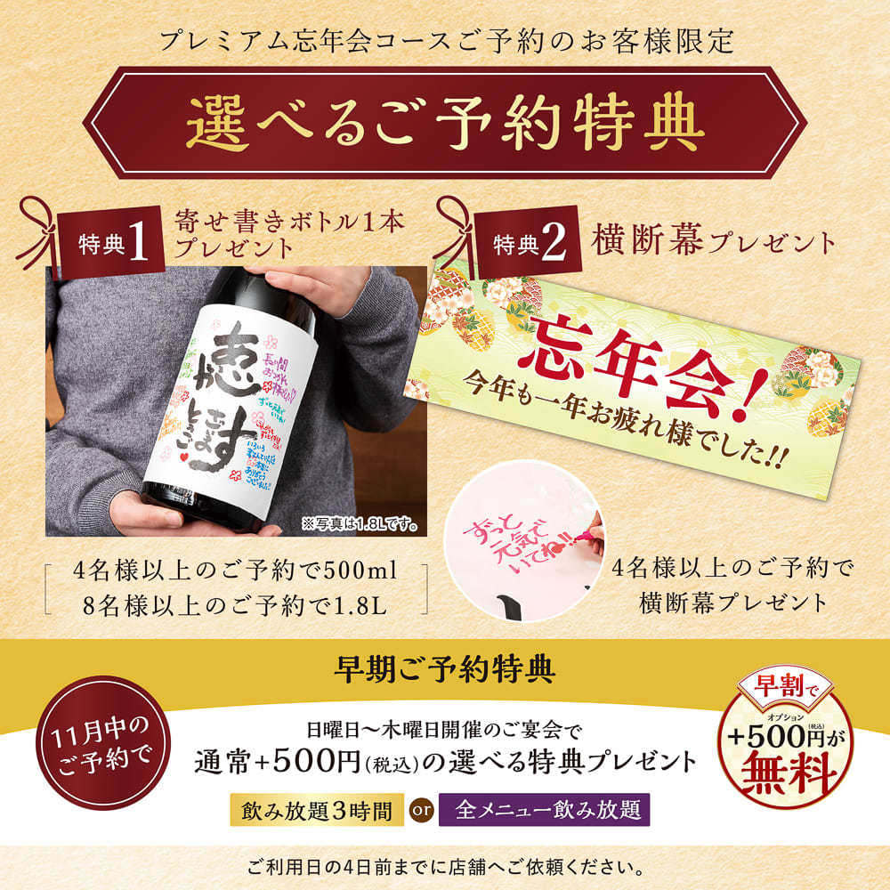 選べるご予約特典付き!宴会コース4000円〜各種ご用意!