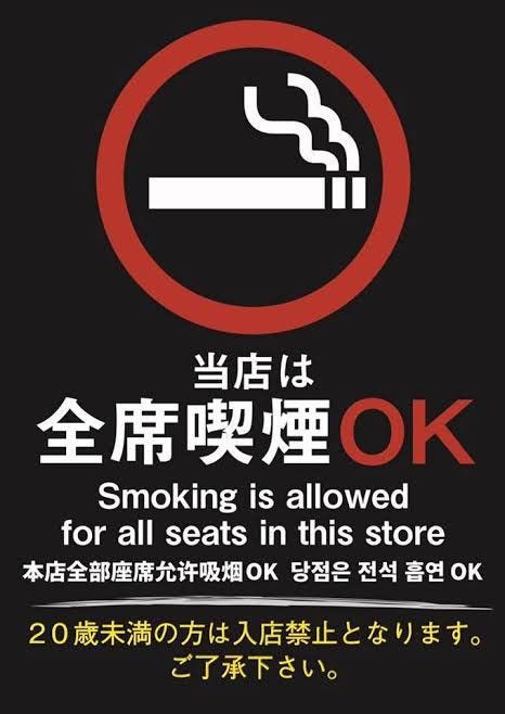 ※当店は喫煙可能店となるため未成年の方のご入店はお断りさせていただいております。ご了承ください。