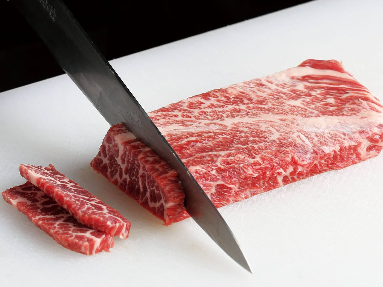 創業以来「焼肉屋さかい」が守り続けるのは「お肉は店内で手切りする」というルール。