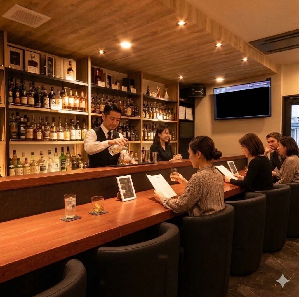 多様なシーンに対応。落ち着いた大人の雰囲気の中で、最高の一杯と共に素敵な夜をお楽しみください。