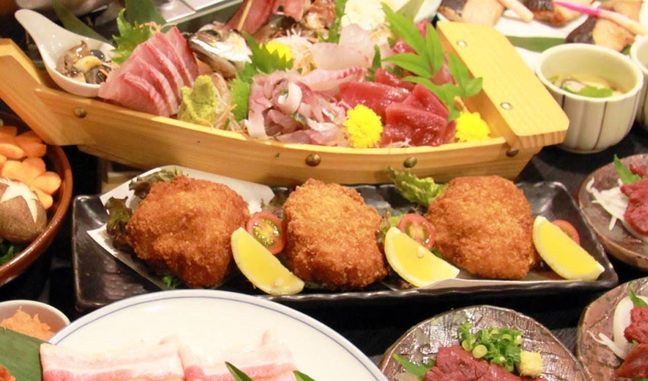 自慢の鮮魚や逸品と一緒に飲み放題がセットになった宴会コース