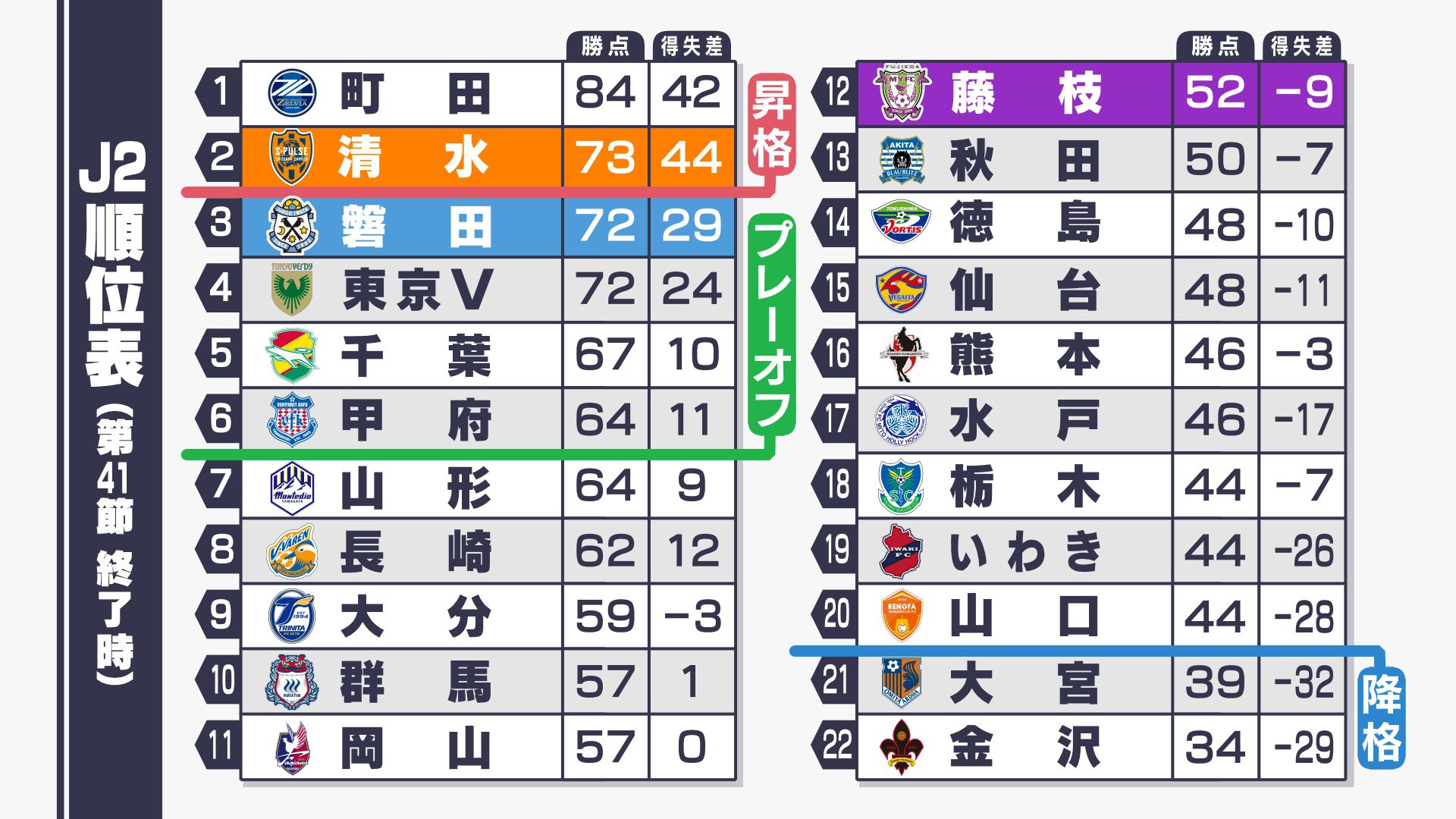ただ、清水が引き分け、もしくは敗れたうえ、磐田、東京Vのいずれかが勝利した場合は、勝ったチームが逆転でのJ1自動昇格となります。