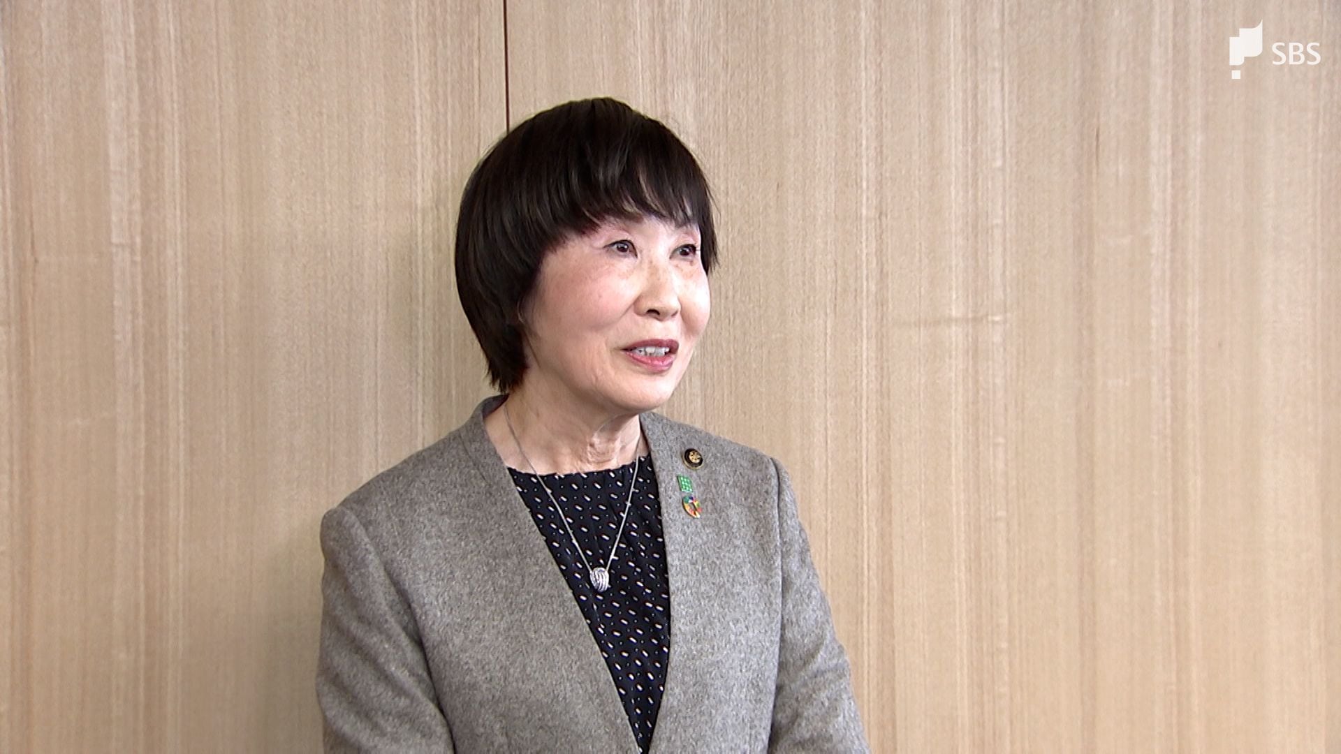 21日午後、報道陣の取材に応じた島田市の染谷市長。