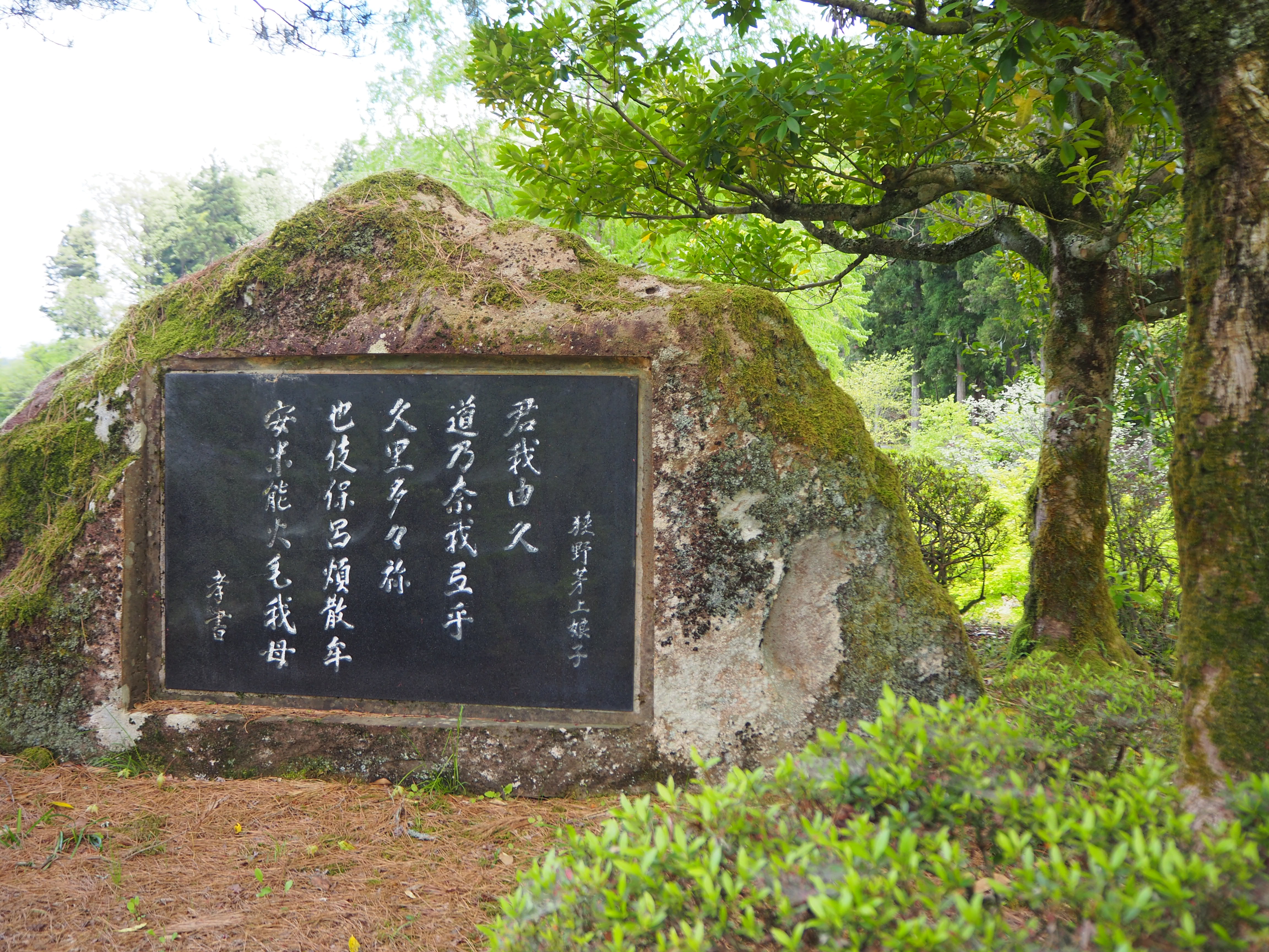 神を畏れて口に出さなかったが、越前へと向かうこの道の頂上に立ち、がまんできずに愛しい人の名(弟上娘子)を口に出してしまった(万葉集 巻十五より ※当時は人の名前をみだりに口にだすと、災がもたらされると信じられていました)