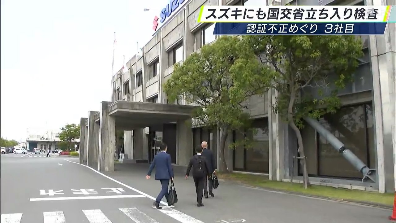 自動車の大量生産に必要な国の認証「型式指定」をめぐる不正で、国土交通省は6月6日、浜松市のスズキ本社に立ち入り検査に入りました。国交省による検査は、5日のヤマハ発動機に続いて3社目です。