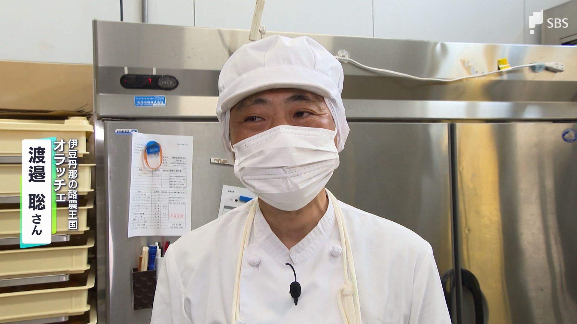 「味とコクが違いますね、焼きあがったときにしっとりさも違います。風味も全然違いますね。バターミルクはここ数年、この業界では注目されているものになっています。うちは製造工場と隣接しているので、廃棄していたものを環境問題も考えて、それを使ってお菓子作りができないかということが始まりです」