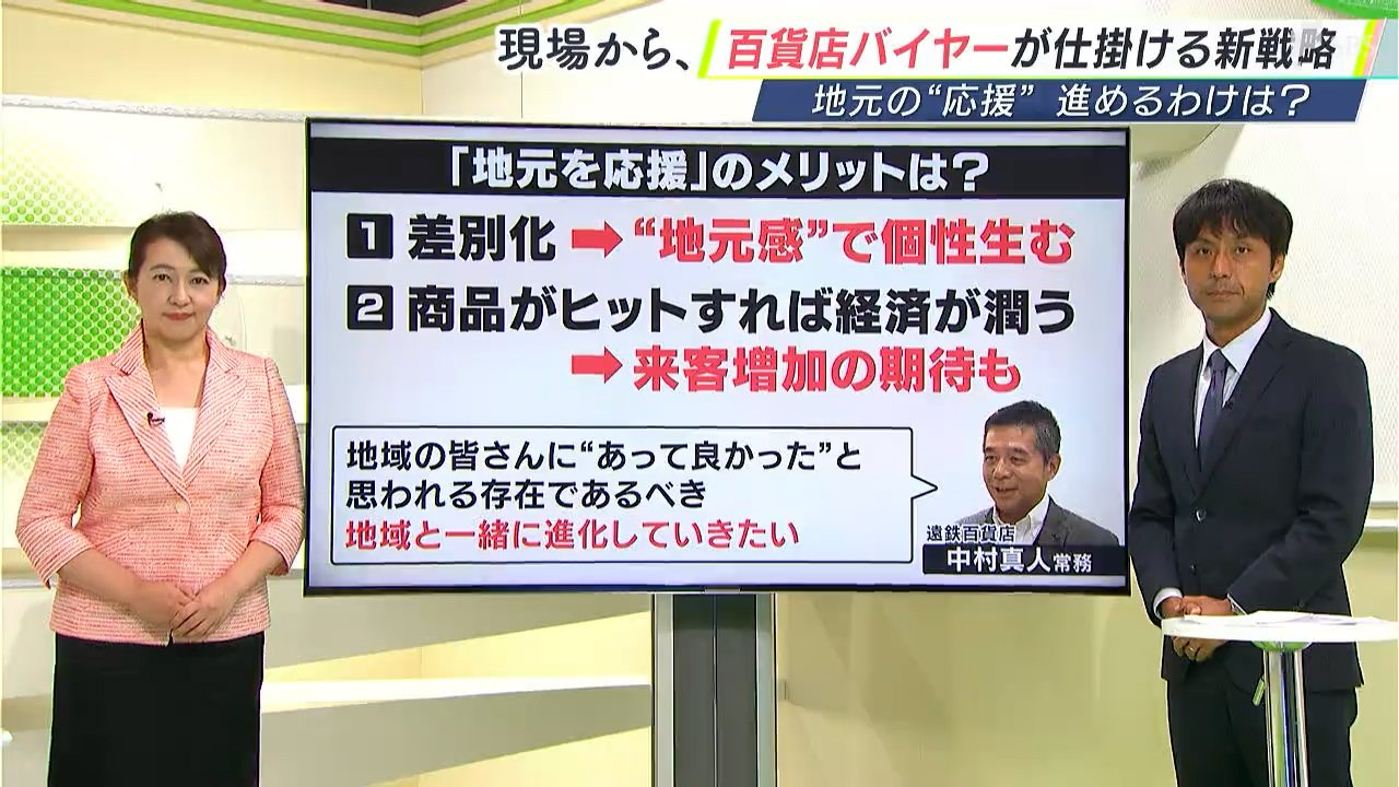 ひとつめは差別化です。売れ筋の商品を並べようとすると、どうしてもどの百貨店も同じような商品が並んでしまいますが、地元感を出すことで個性が生まれます。