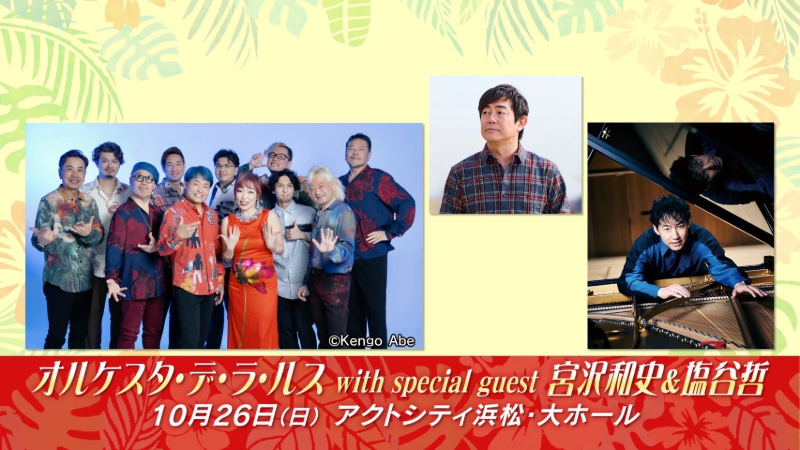 ヤマハジャズフェスティバルは、オルケスタ・デ・ラ・ルスの皆さんに加え、元メンバーでピアニストの塩谷哲さん、THE BOOMの元ボーカリストとして多くの人を魅了してきた宮沢和史さんを迎えた華やかなステージです。