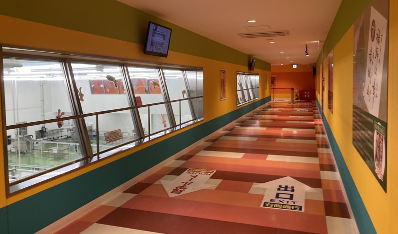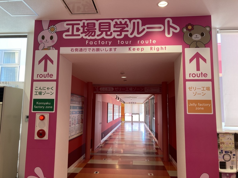 2Fは、工場見学エリアになっています。蒟蒻ができるまでの様子や雑学を学べるパネルが展示されており、大きな窓からは実際の工場内を見ることができます(工場ラインは土日は稼働していません)。こどもはもちろん、大人になってからも工場見学はとても楽しいですよ。