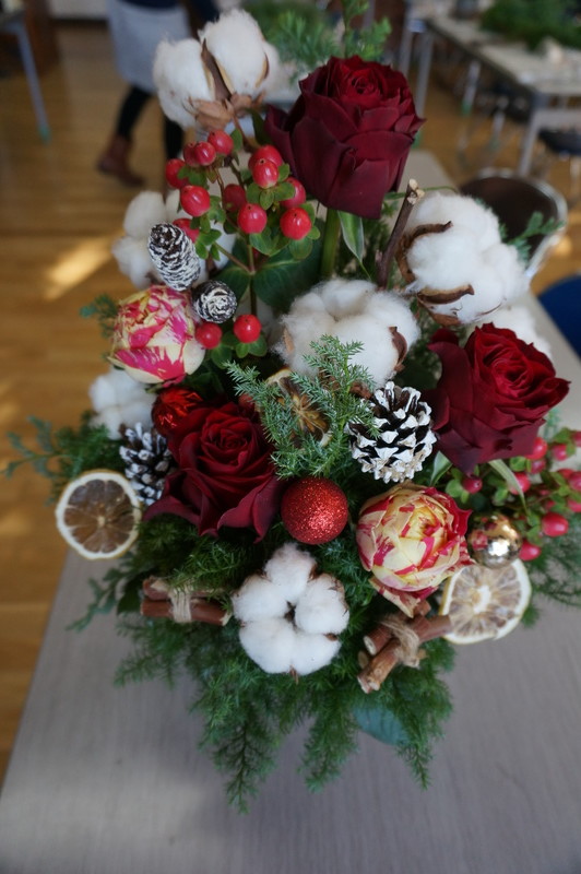 バラのクリスマスアレンジ(12月6日/浜松市)