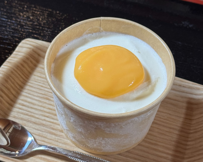 たまごかけごはんをいただいたあと、烏骨鶏の卵を使った「エッグジャムアイス」も味わいました!たまごにレモン汁を加えて作られたジャムで、口に入れると卵の濃厚さがしっかり残っていて、とてもおいしかったです。
