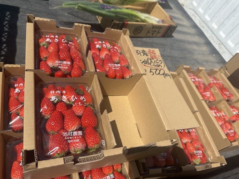 この日最初に並んでいたのは300円のイチゴパックでしたが即完売となり、500円の大きなパックに替わりました。