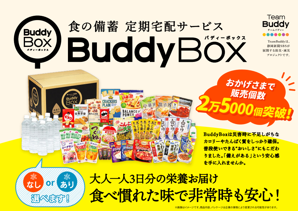 静岡新聞社・静岡放送の地域課題解決の事例をご紹介。今回は「BuddyBox」についてご紹介します。 ローリングストックの考え方を生かした食の備蓄定期宅配サービス。当社がハブとなり、流通、輸送、メーカーをつなぐ座組を構築することで、商品化~顧客管理~商品仕入れ~梱包・配送を実現しました。