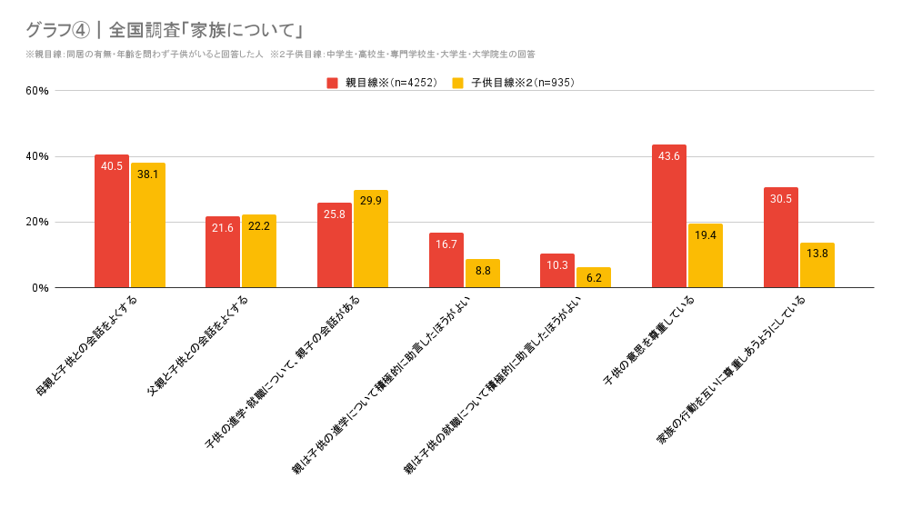 調査から浮かび上がったのは、同じ家庭内にありながら、親と子で全く異なる「景色」を見ているという事実です。