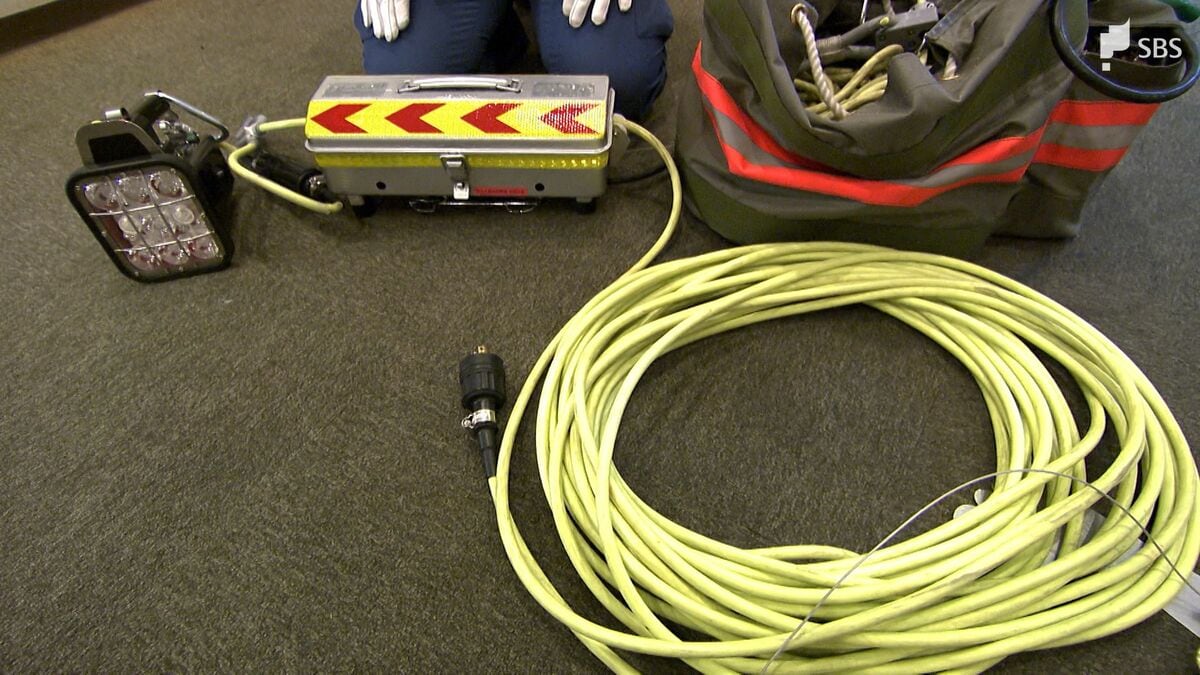 「安全な位置で待機する隊員とつながる命綱となるようなコードとなっています」