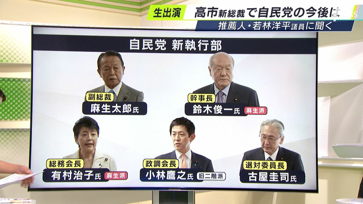 副総裁には麻生太郎さん、そして幹事長には麻生派の鈴木俊一さん、さらに総務会長には麻生派の有村治子さん、政調会長に小林鷹之さん、選対委員長に古屋圭司さんが起用されました。
