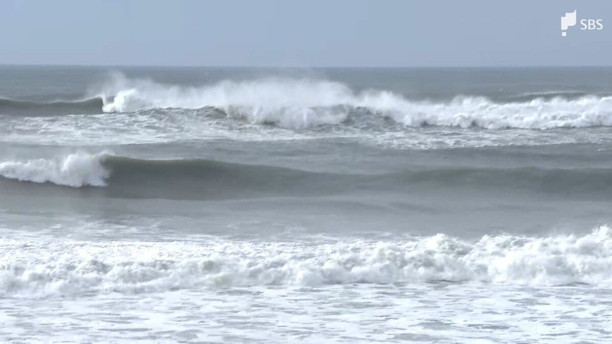 「午前8時の御前崎海岸です。風はほとんど吹いていませんが、波は非常に高くなっています」
