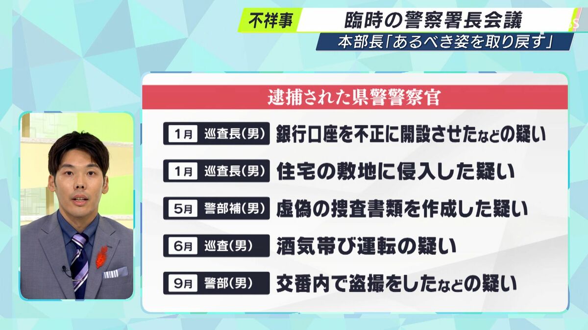 2025年に入って5人の警察官が逮捕されていて、8人が懲戒処分を受けています。県民からの信頼回復にむけ綱紀粛正の徹底が大きな課題となっています。