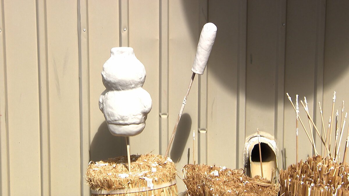 「天狗の張り子の型を作っている」
