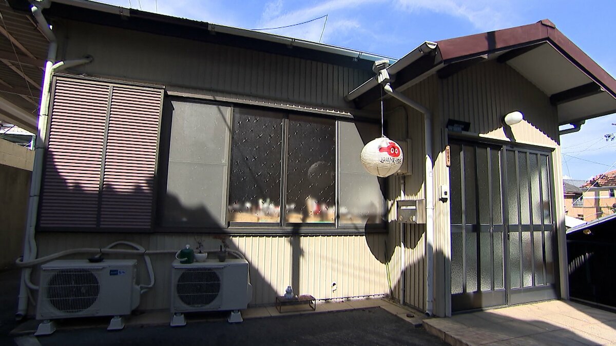 路地裏を通り抜けると現れたのが坂田さんの自宅兼アトリエ。軒先には、何やら天日干しされています。