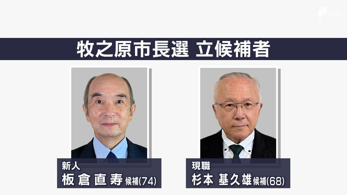 牧之原市長選に立候補したのは届け出順に、新人で行政書士の板倉直寿さん(74)、3期目を目指す現職の杉本基久雄さん(68)の2人です。