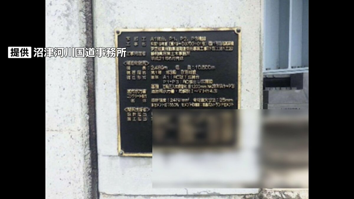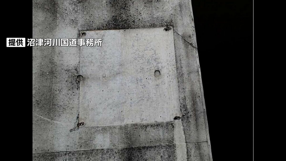 道路を管理する沼津河川国道事務所によりますと10月22日、定期的に行っている道路の点検中、銘板がないことに職員が気がつきました。