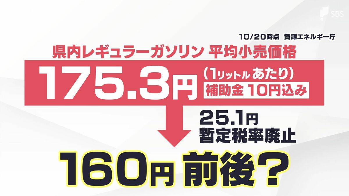 暫定税率の廃止が実現すれば現在の補助金10円分がなくなっても、今より15円ほど安くなる計算です。
