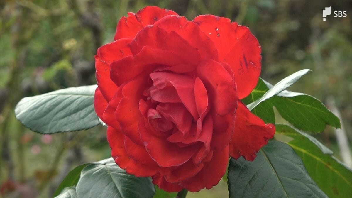 「このバラすごいね、色がね、目が覚めてびっくり。すごいきれい、赤」