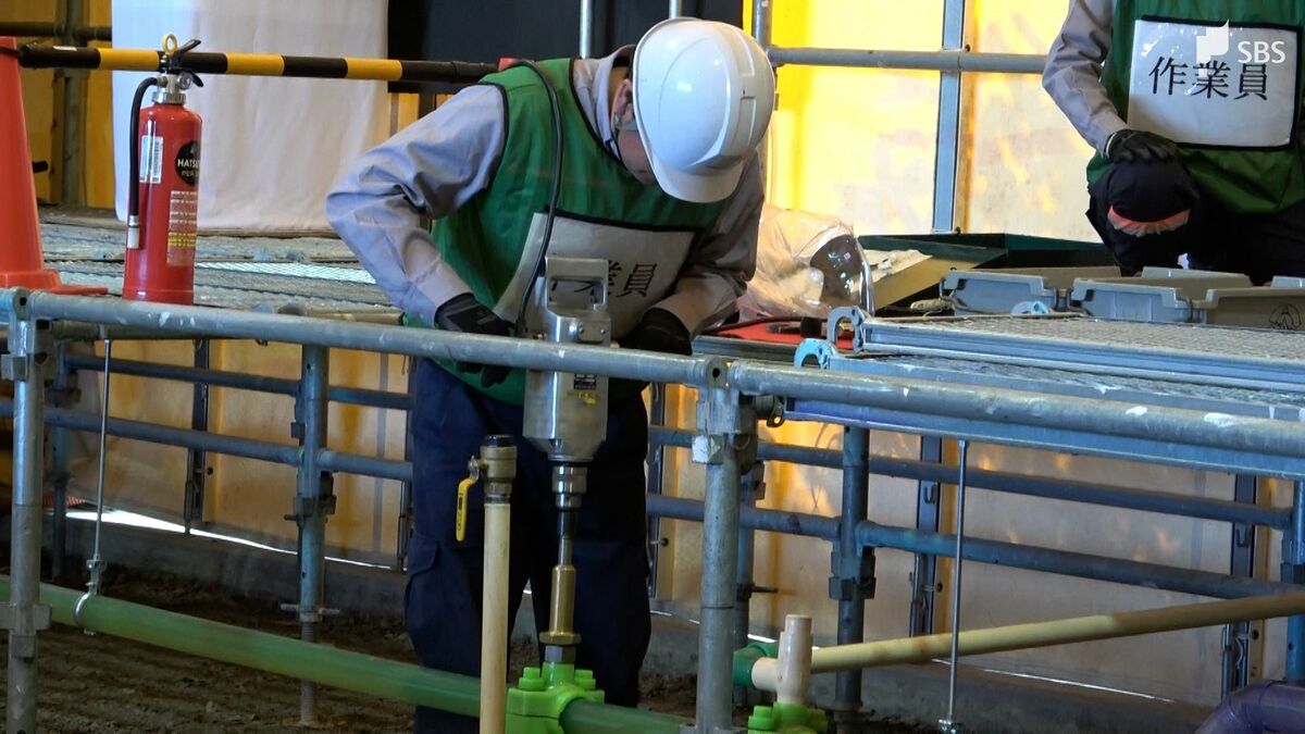 実演では風水害によってガス管に水が浸入し、ガスの供給に問題が発生した想定で、若手・中堅社員6人が原因の調査から修繕までの一連の作業を披露しました。