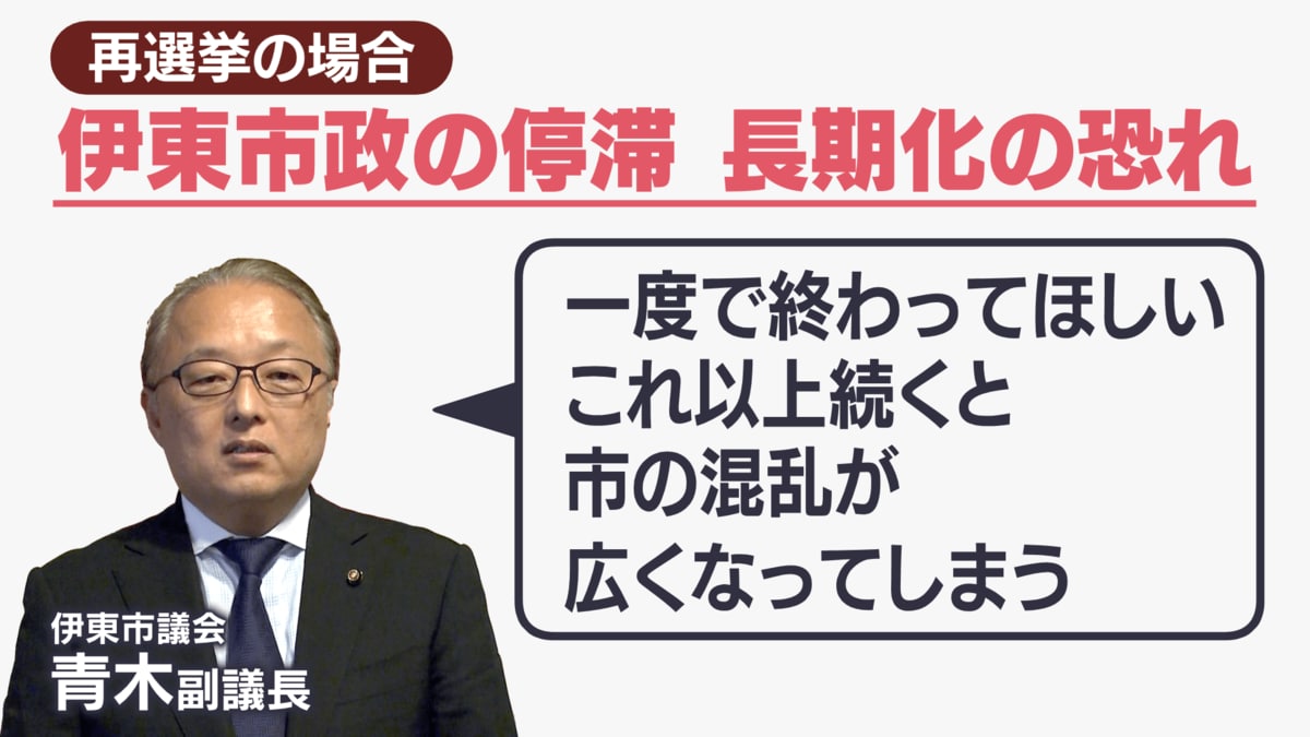 再選挙になった場合、市政の停滞がさらに長期化する恐れがあります。