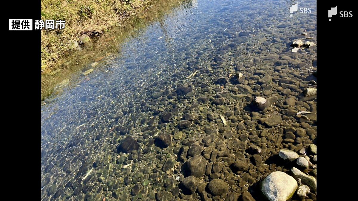 静岡県静岡市清水区の庵原川で11月17日、アユやサワガニなど約500匹の魚類が死んでいるのが見つかりました。