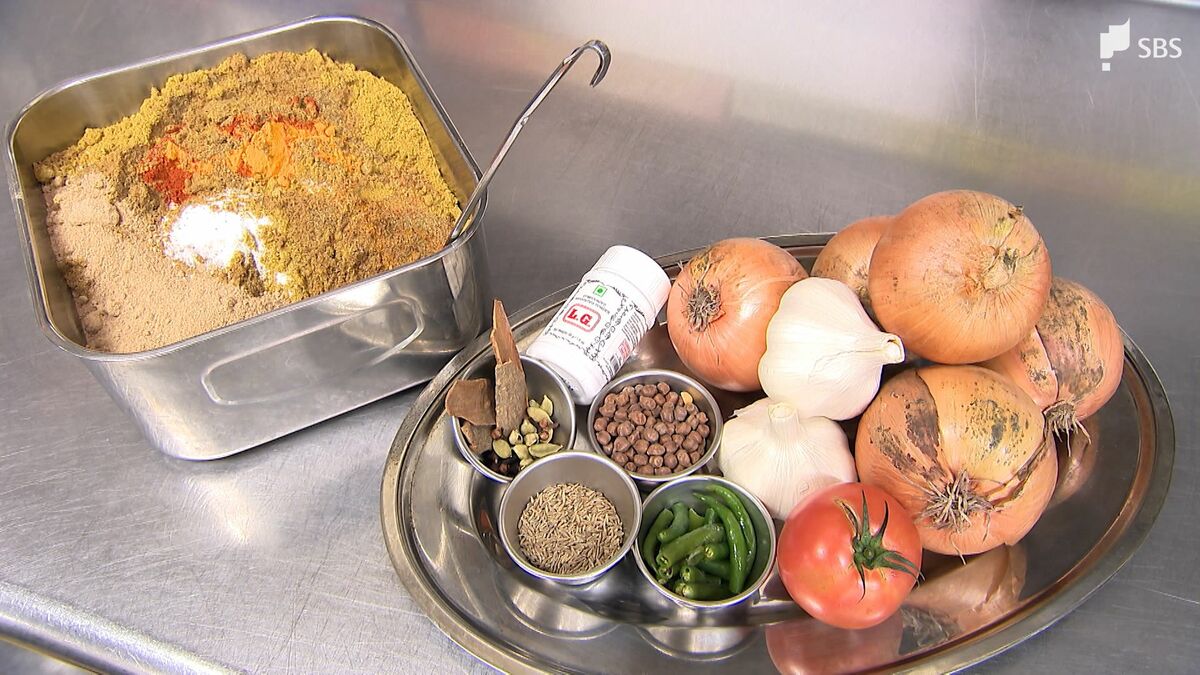 カレーにはタマネギやトマトなどの野菜と20種類以上のスパイスを使います。
