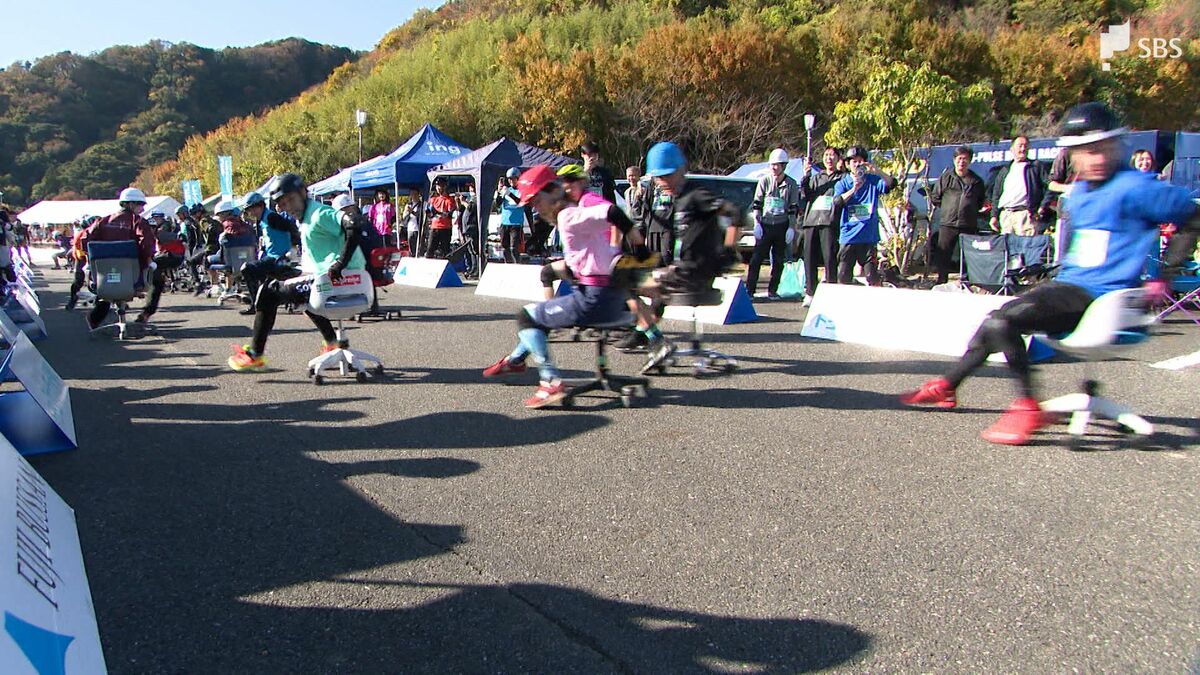 キャスター付きの事務いすを乗り物にして争う耐久レース「いす1(ワン)グランプリ」が11月30日、静岡市駿河区のリバティリゾート久能山で開かれました。