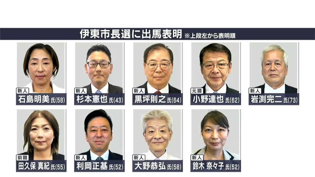 静岡県伊東市の市長選挙が12月7日に告示されます。今回の伊東市長選は前市長が学歴詐称疑惑をめぐり11月に不信任決議を受けて失職したことに伴って行われるもので、これまでに計9人が出馬を表明し、激しい選挙戦が予想されています