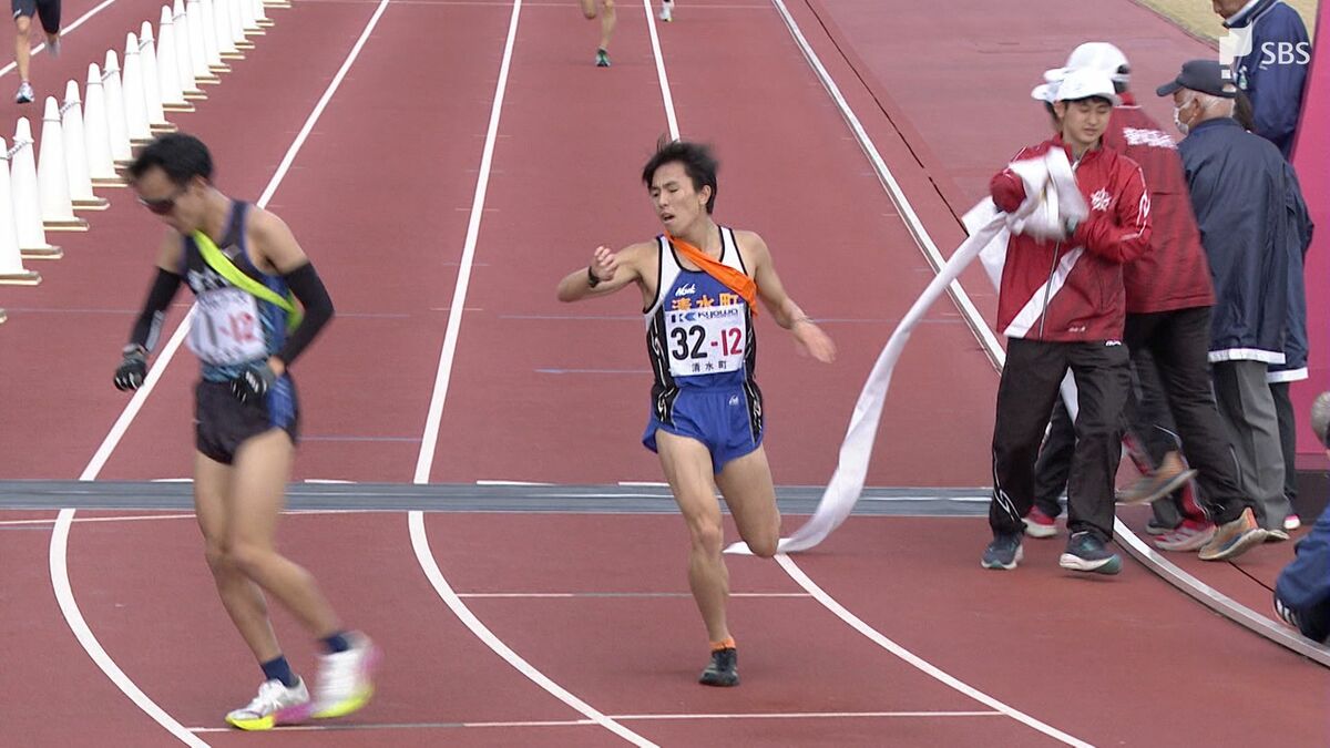 町の部は序盤から清水町がトップに立ちます。1区、4区で区間賞、7区では町の部の区間新記録を出し、スタートから一度も首位を譲らない完全優勝で町の部2連覇を達成しました。